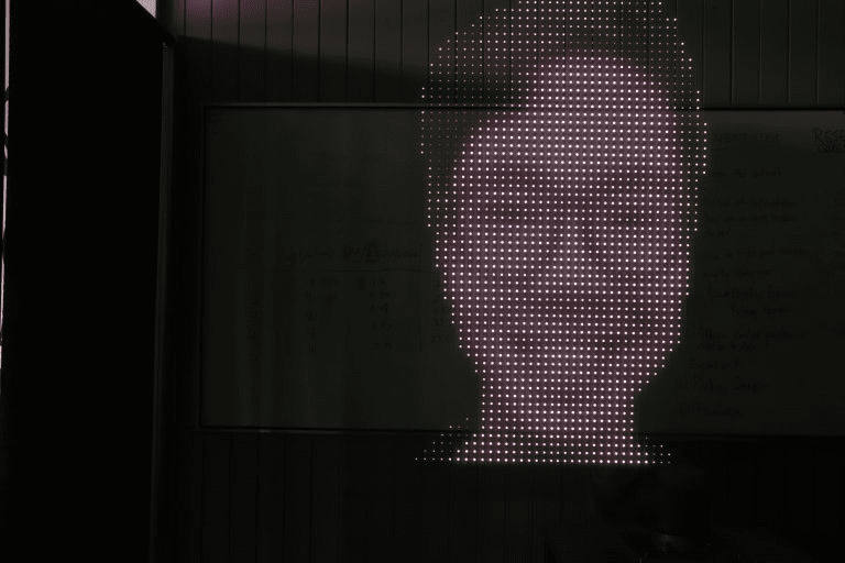 We then focused on light painting, which involves taking a long exposure photograph while moving a bright light in front of the camera. When the image develops, the light will form a trail along the path it was moved in, essentially ‘painting’ a streak on the final image. To do this, we are using a precise robotic arm which is holding a strip of LEDs, allowing us to create coloured images within the light painting. At first, we tested this method with some simple graphs of the Australian population. We then moved on to some pixel art and finished off with images of our faces, which ended up eerily floating in the room.